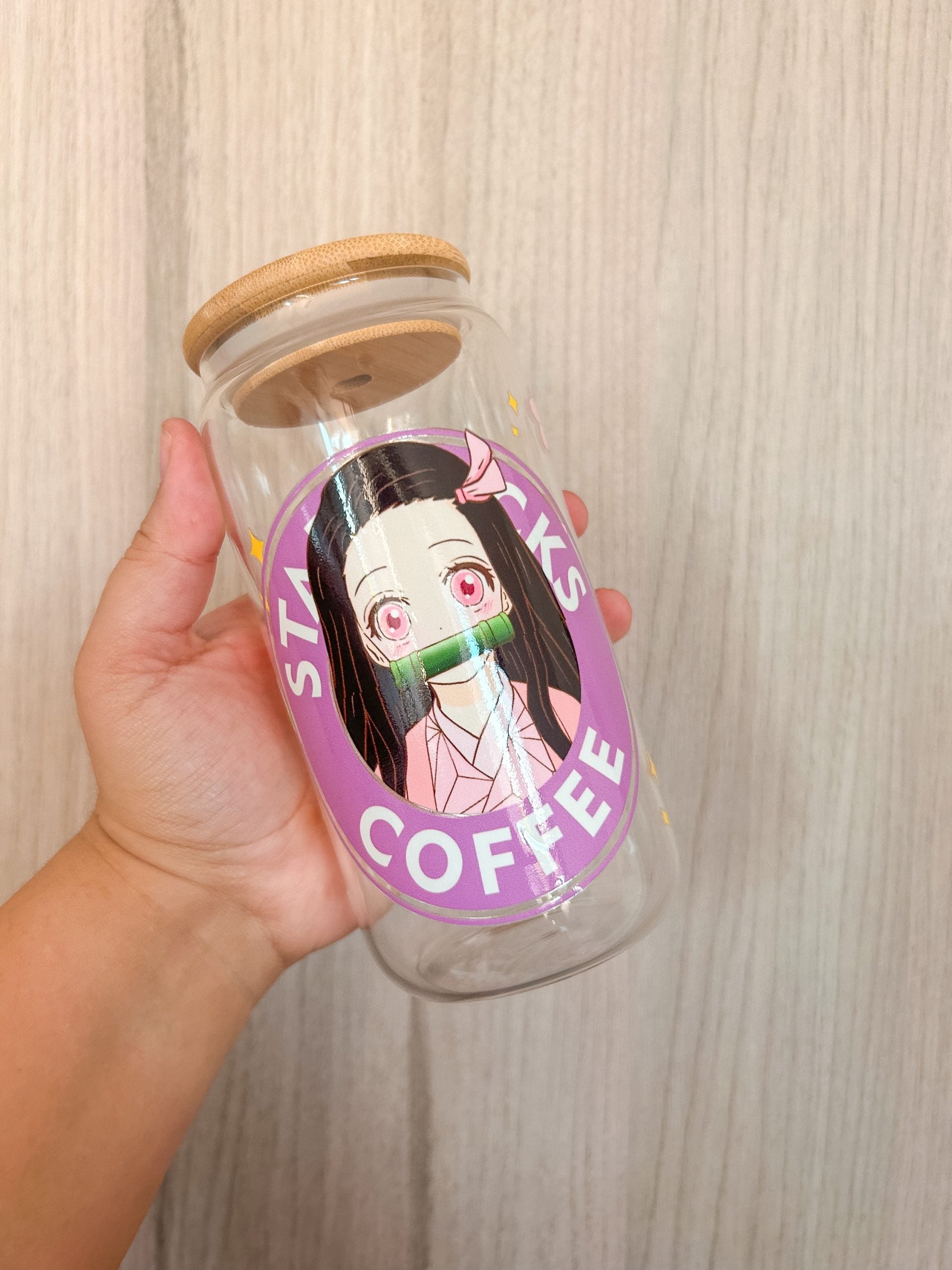 Vaso de Vidrio Tapa de Bambú
